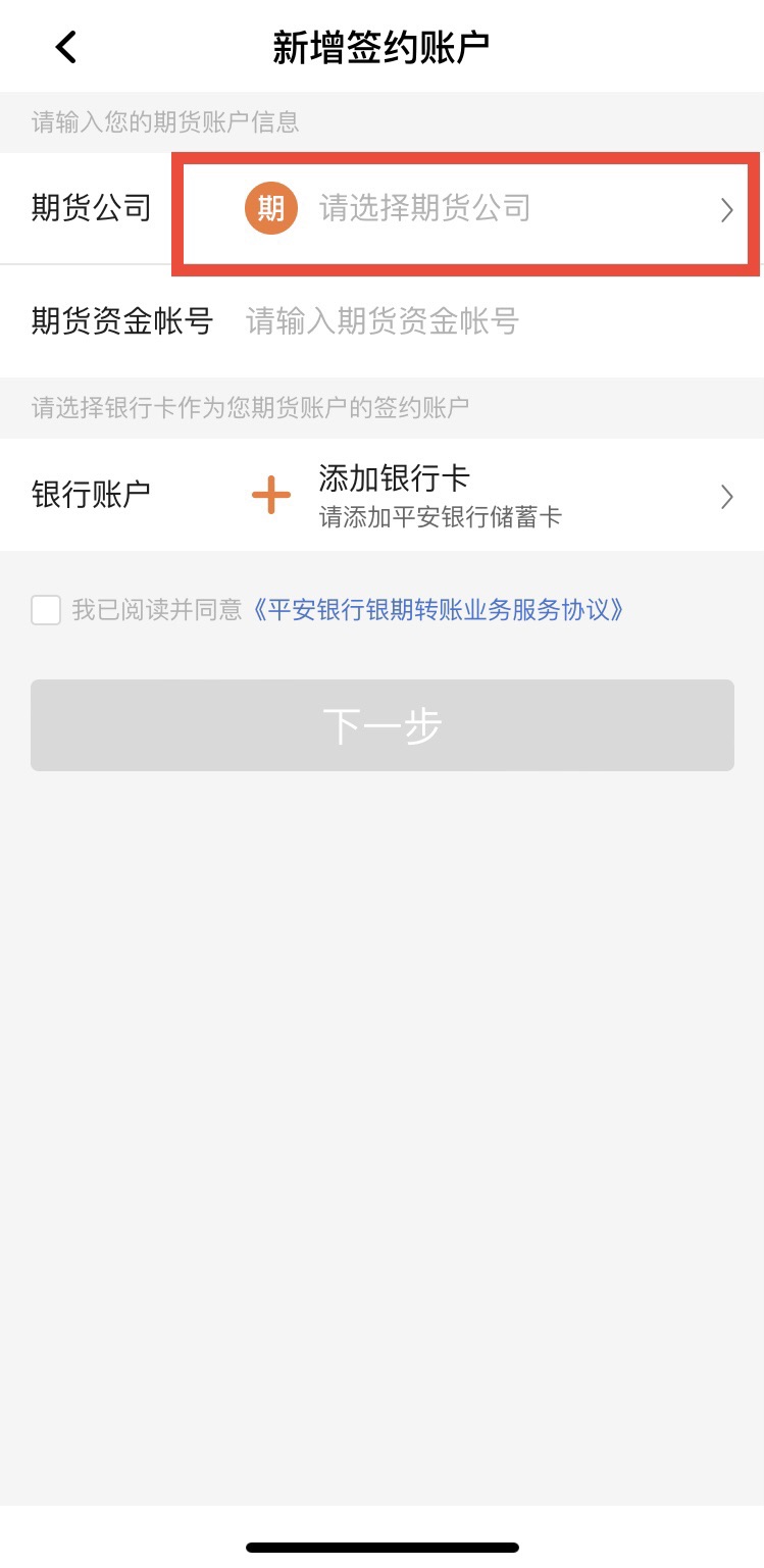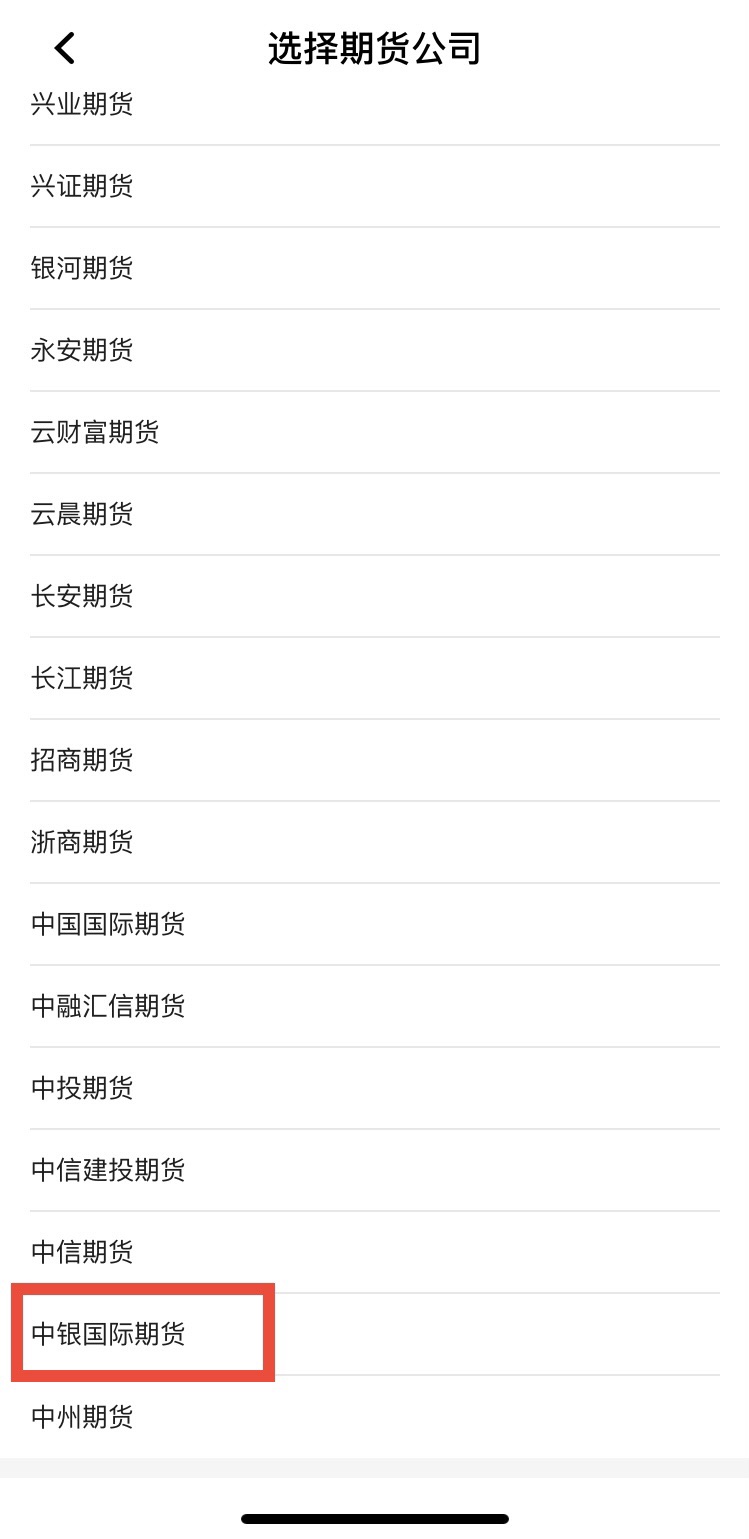 5.在“期貨公(gōng)司”中(zhōng)選擇“中(zhōng)銀國(guó)際期貨”。