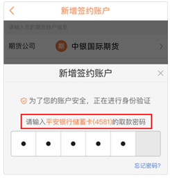 6.依次輸入銀行卡密碼和期貨保證金賬戶密碼進行銀期簽約。
